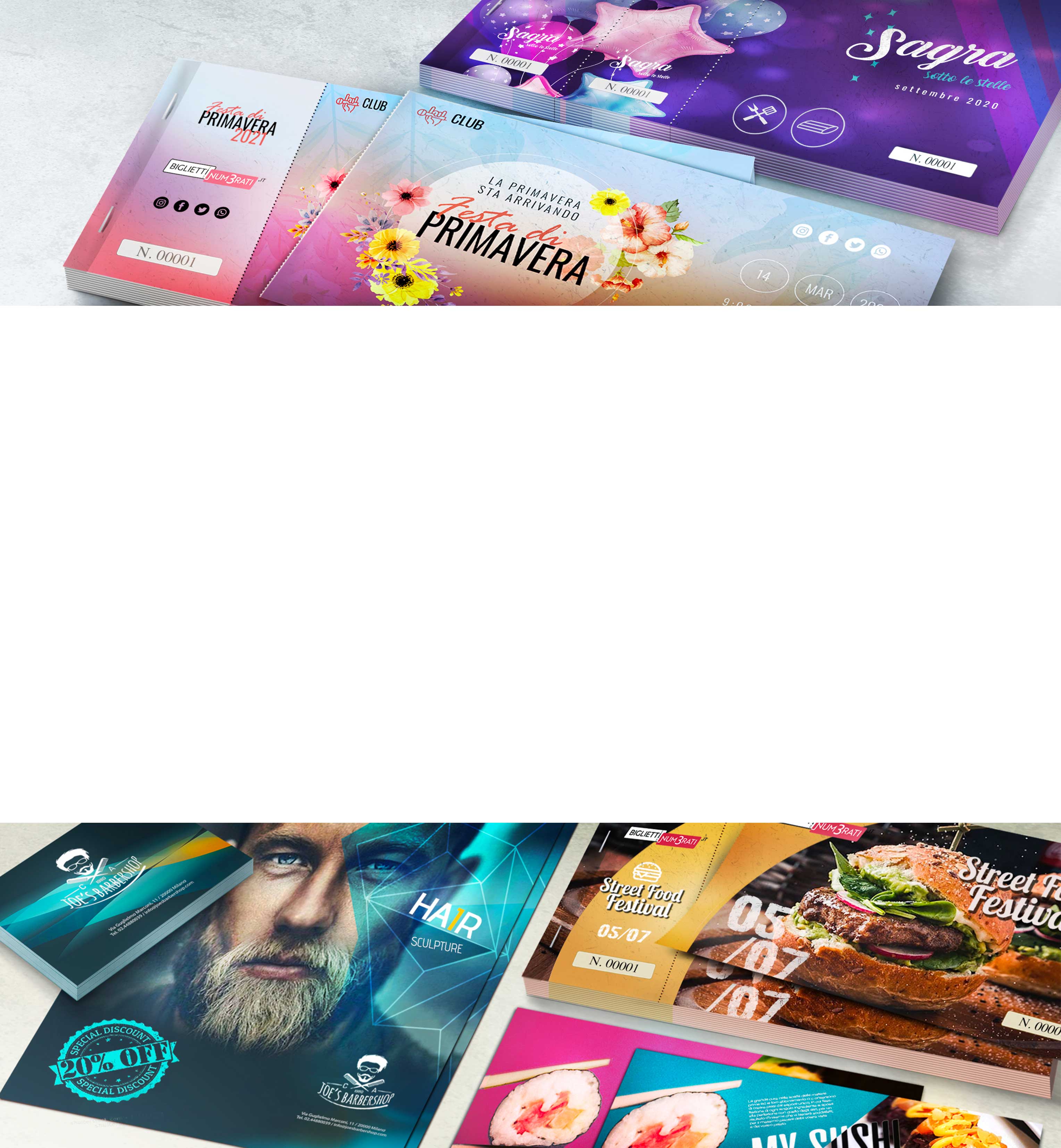biglietti per le lotterie, buoni pasto o biglietti per ogni occasione.
